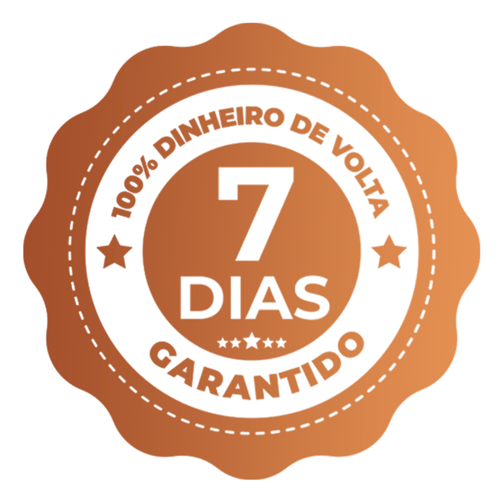 Se você não gostar não tem problema nenhum. Oferecemos uma garantia incondicional de 7 dias. Dentro desse período, por qualquer motivo, você não gostar ou quiser desistir da compra, eu cancelamos sua compra e reembolso 100% do seu investimento.